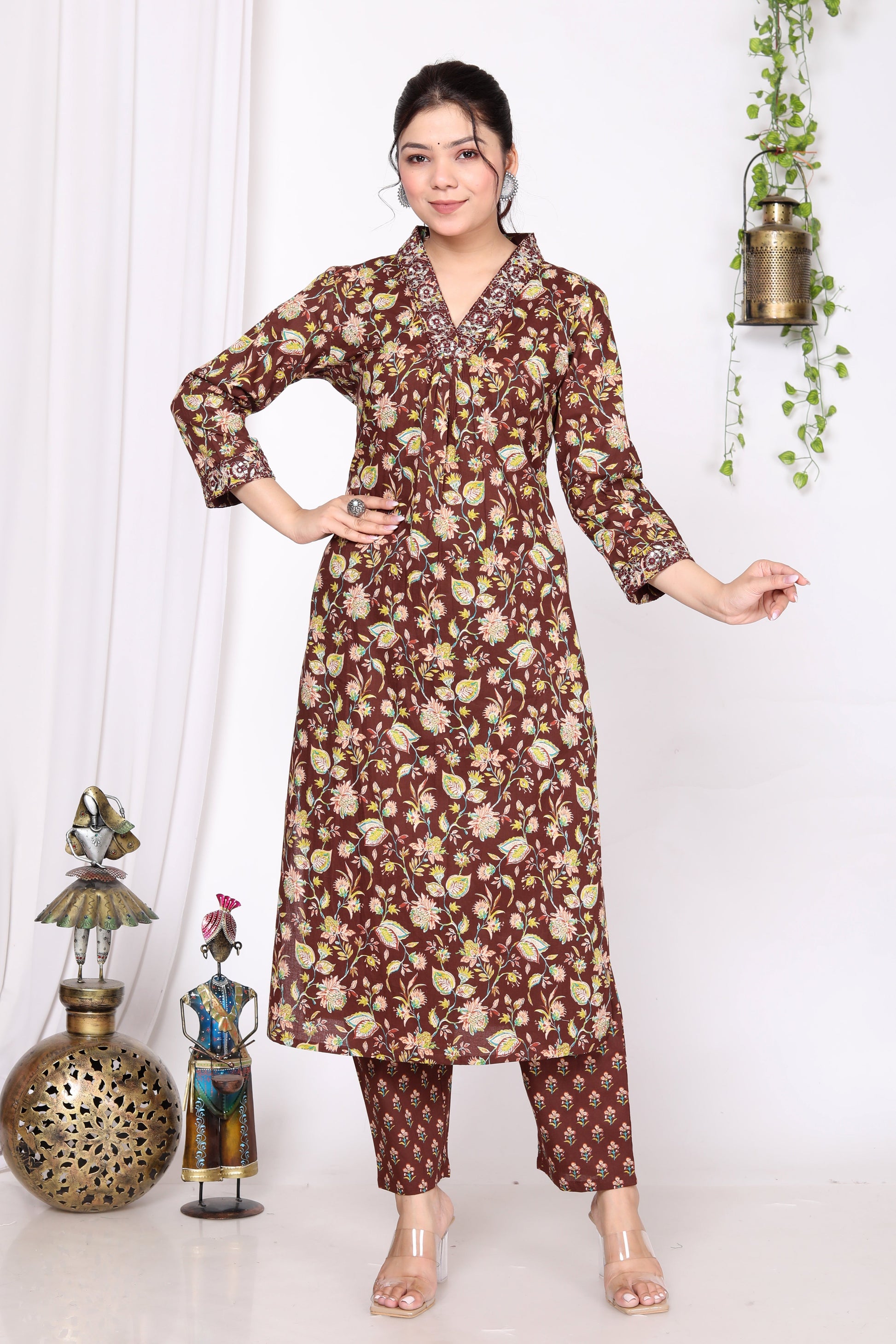 Exude grace and style with this Maroon floral print cotton kurta set, perfect for both casual and festive occasions. The rich maroon color paired with the charming floral print creates a timeless look thatβs both vibrant and sophisticated.