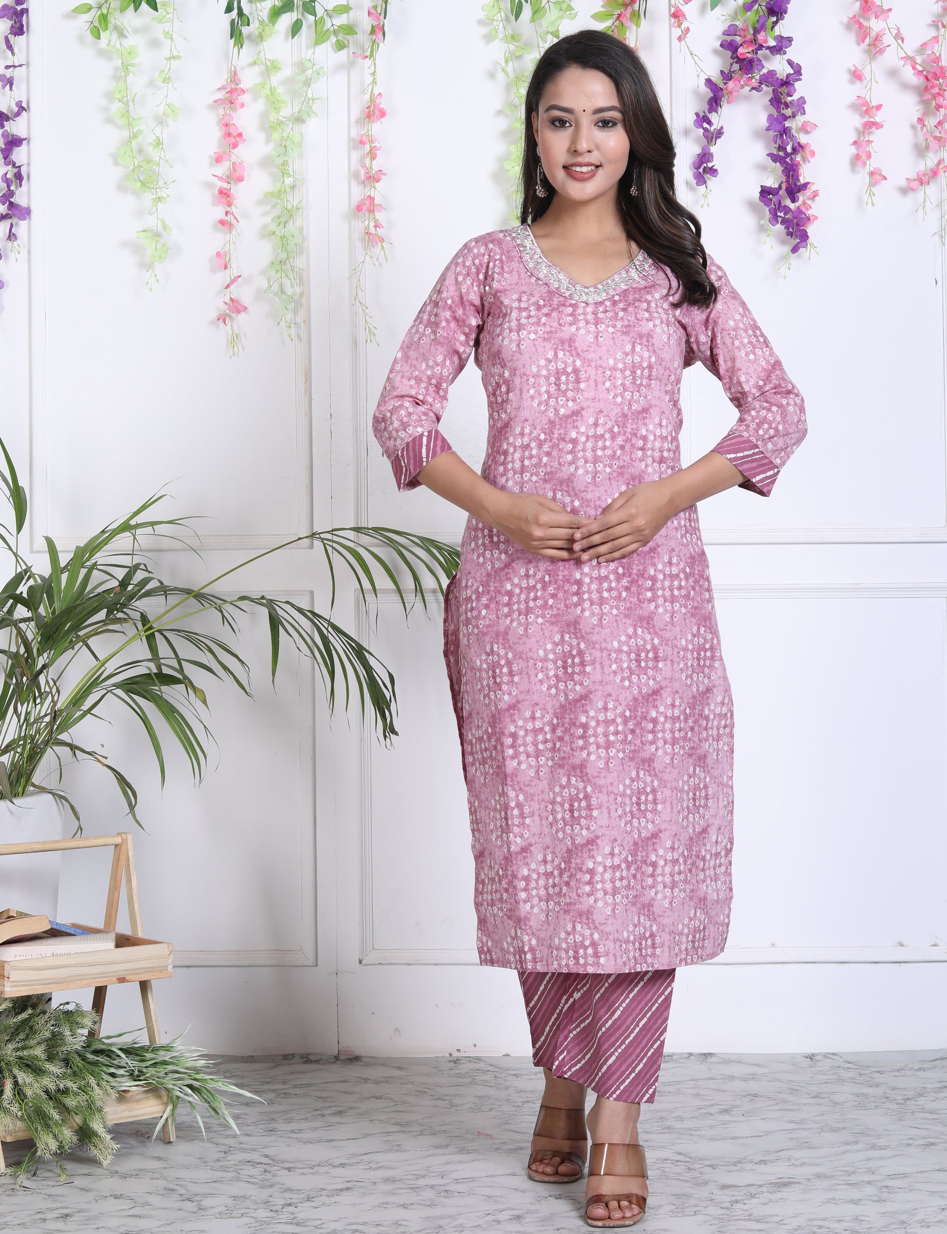 Purple Cotton Printed Kurta Pant Set Dupatta with Embroidery work-800037